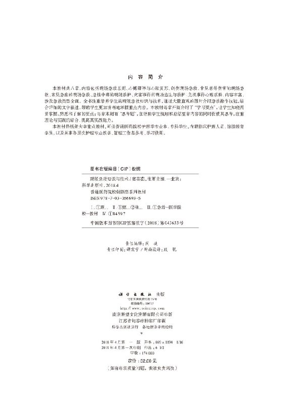 内容包括现场急救总则 心搏骤停与心肺复苏 社 窦英茹 9787030566935 科学出版 张菁 医学书籍 现场急救知识与技术 创伤现场急救等