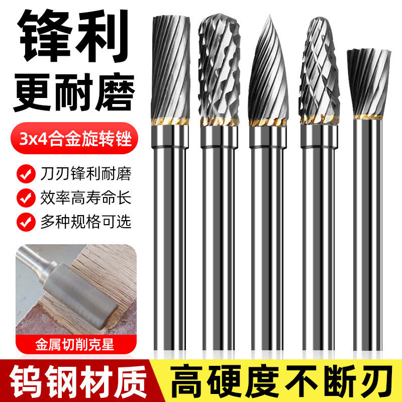 3x4mm钨钢硬质合金旋转锉铣刀钨钢打磨头 铣刀钨钢磨头金属打磨头