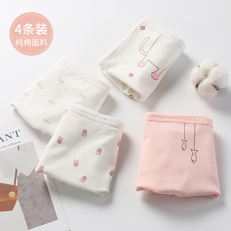 官方旗舰店0286 女士纯棉内衣抗菌中高腰小平角裤 ab内裤 4条装