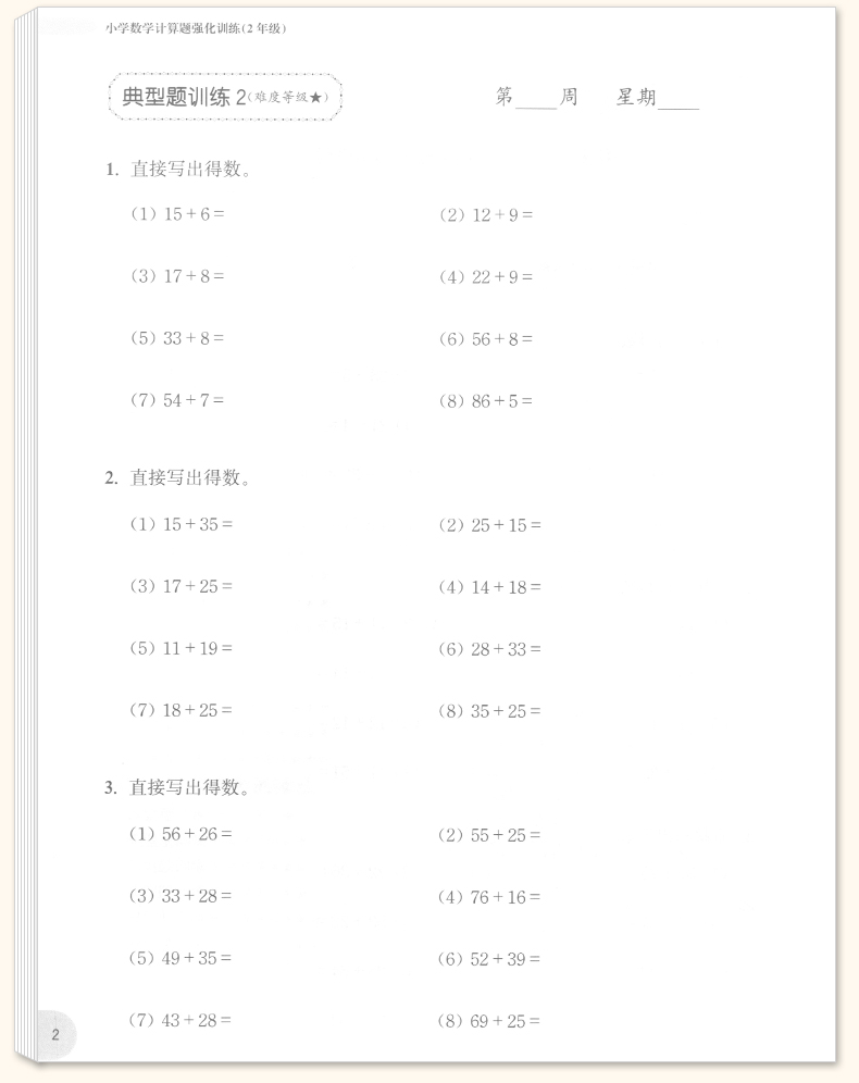 小学数学计算题强化训练 2年级全一册 通用版 新版 含分步解答 周计划 二年级计算题专项训练口算天天练同步练习册 答案详解 现货