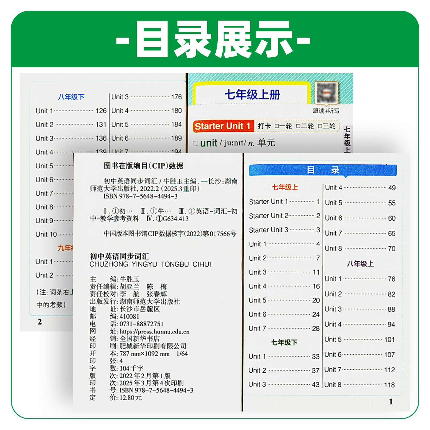 初中英语单词汇总2025新人教版 单词小册子初一六七八九年级初中英语同步词汇小本口袋书外研课本顺序单词表中考词汇记背记忆qbook