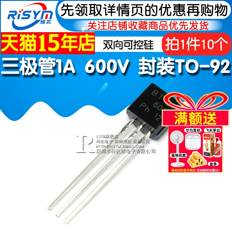 插件三极管 双向可控硅BT131 10只 600 封装 Risym 600V