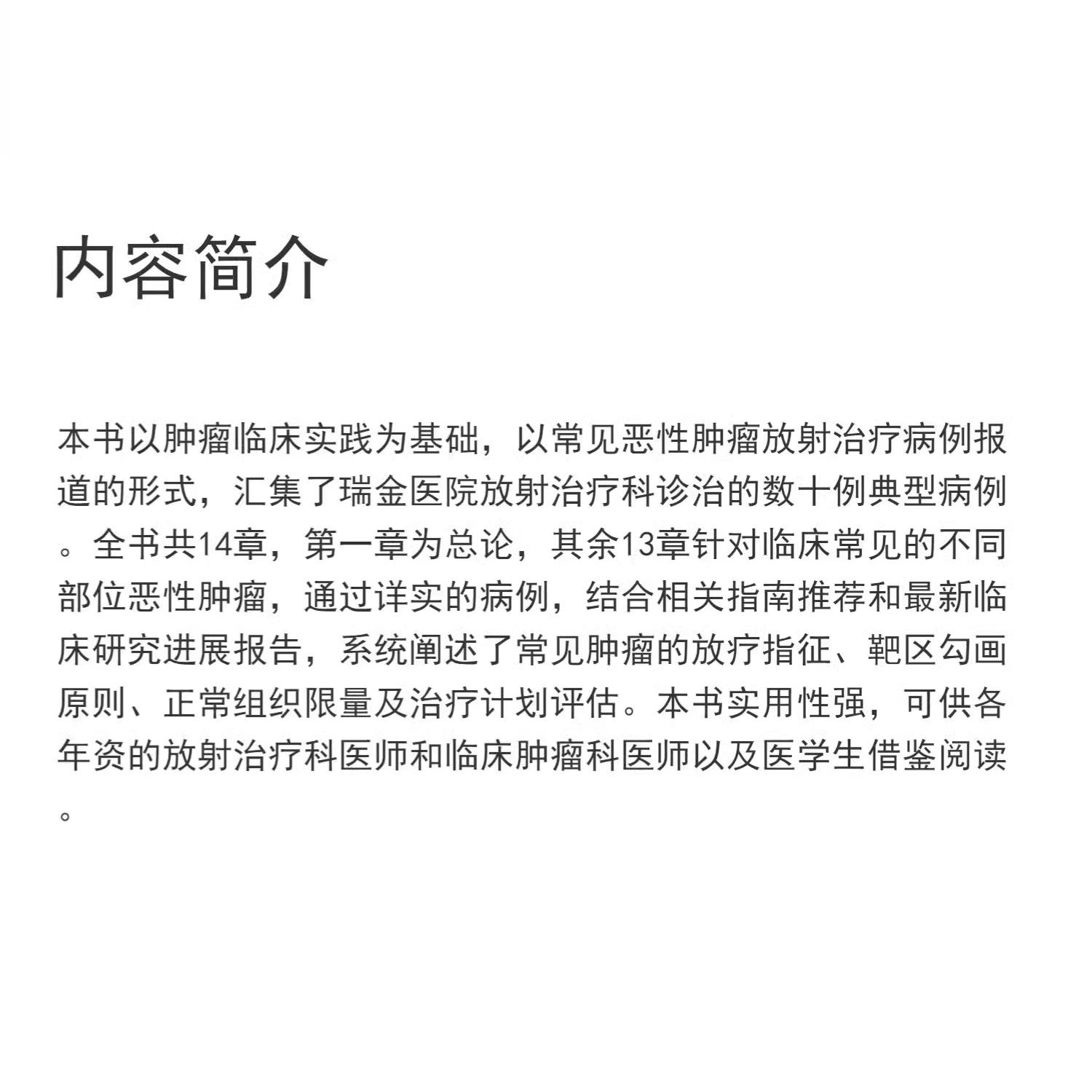 肿瘤放射治疗住院医师手册 肿瘤治疗学肿瘤学放射治疗方案头颈部胸部肿瘤腹部妇科肿瘤乳腺软组织淋巴瘤 常见肿瘤调强放疗案例示范