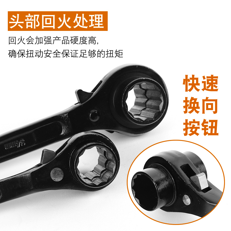 尖尾棘轮扳手双头套筒快速扳手双向梅花六角多功能尖头板手活动扳