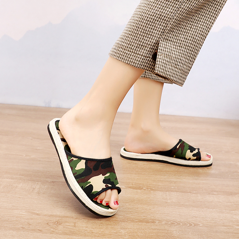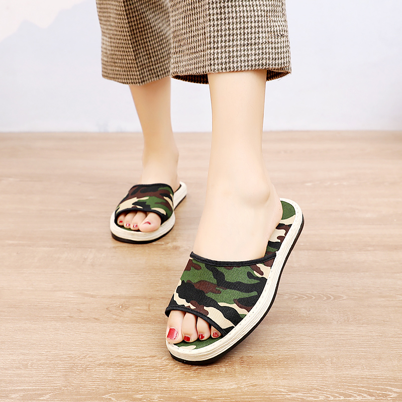 女防臭布底凉拖鞋 青春潮流百搭迷彩色布鞋 女夏 韩版 汪源千层底女鞋