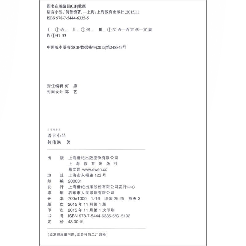图书籍 何伟渔 世纪出版 社 上海教育出版 正版 文化教育 语言学 白马湖书系 语言小品