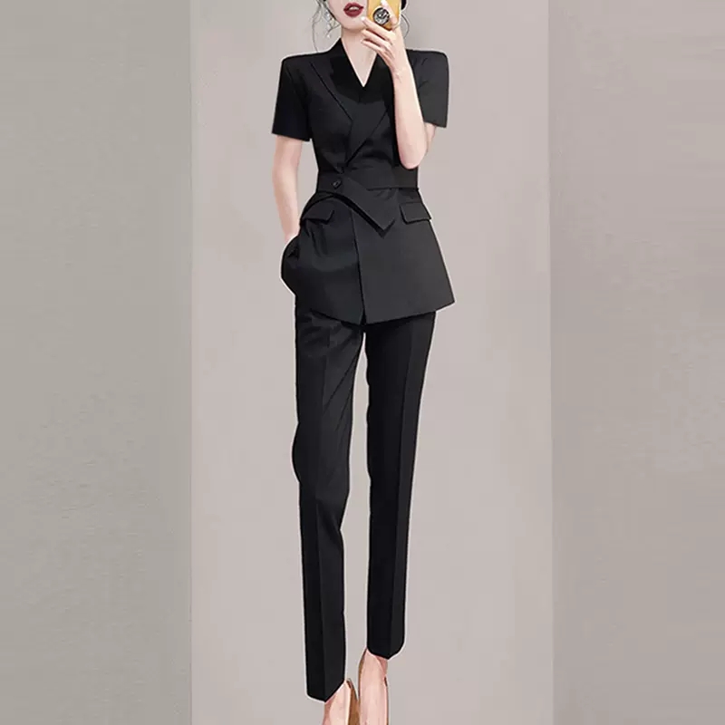 套装 别致显瘦短袖 2025夏季 女装 两件套 新款 高级感职业轻奢气质西装