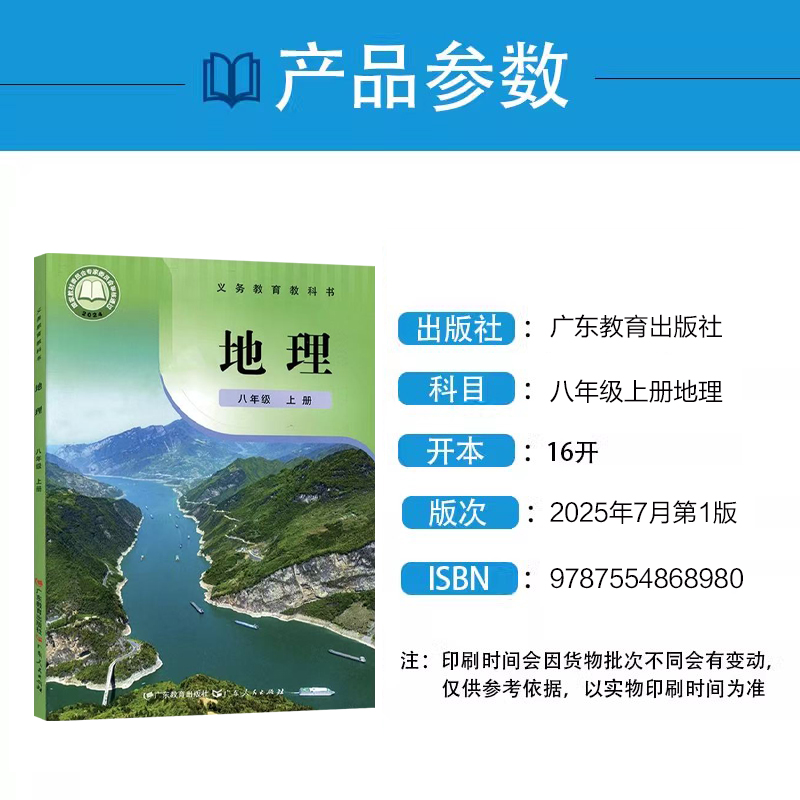 包邮 2025适用粤人版 8八年级上册地理北师大版 八上册地理北师版 正版 生物课本全套2本教材书教科书粤人版 生物学 广东部分地区适用