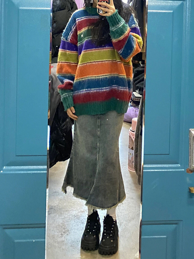 梨形身材牛仔半身裙女高腰春夏大码 a字鱼尾裙 胖MM遮肚显瘦中长款