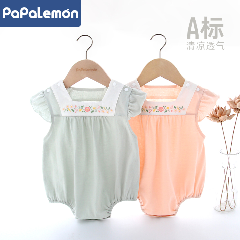 连体衣婴幼儿哈衣外出衣服 纯棉薄款 柠檬爬爬女宝宝飞袖 包屁衣夏季