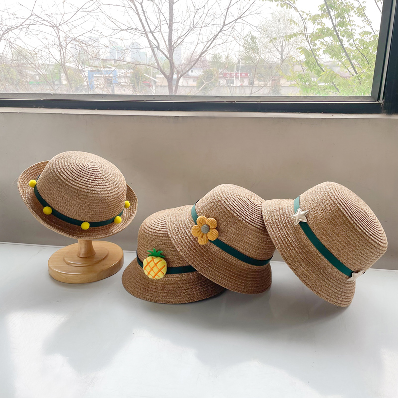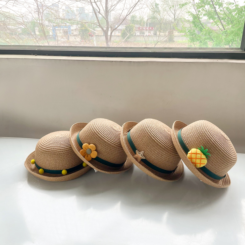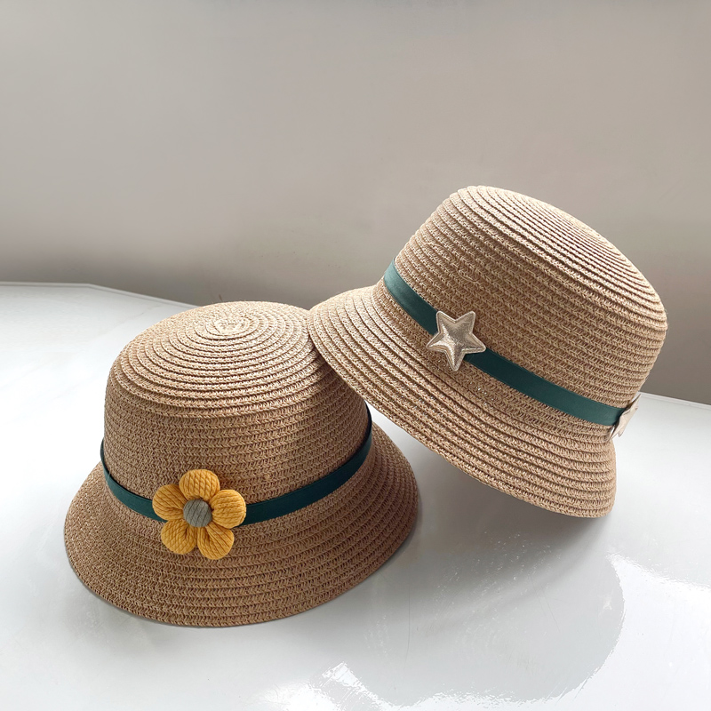 2023新款 儿童帽子夏洋气遮阳草帽男女童渔夫帽防晒太阳帽公主透气
