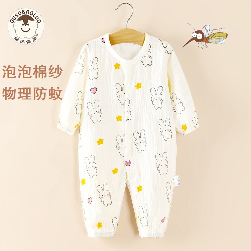 薄款 新生婴儿衣服四季 纯棉纱布初生宝宝连体衣哈衣爬服夏季 长袖 款