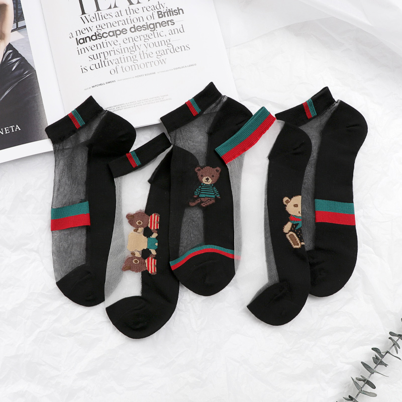 丝袜女短夏季 水晶丝耐磨棉底卡通小熊玻璃冰丝浅口短筒袜子女 薄款