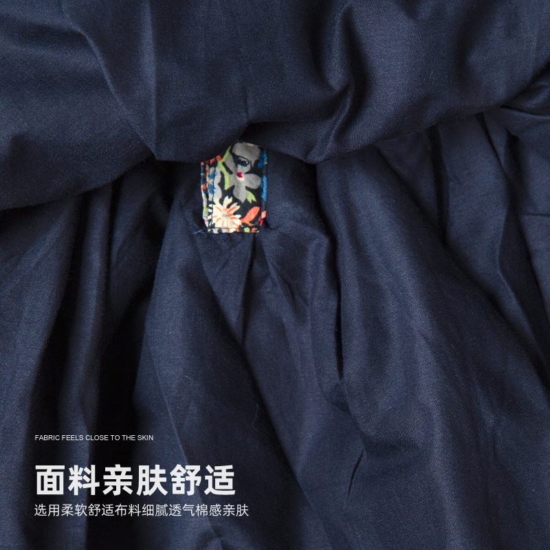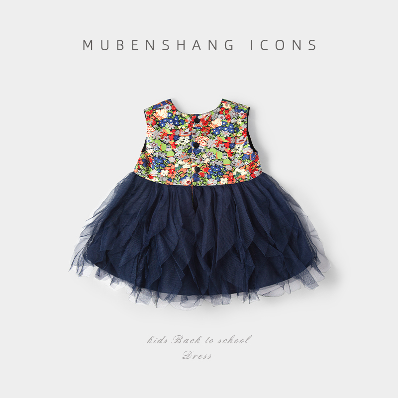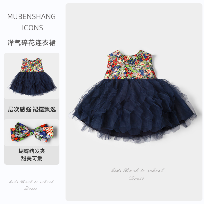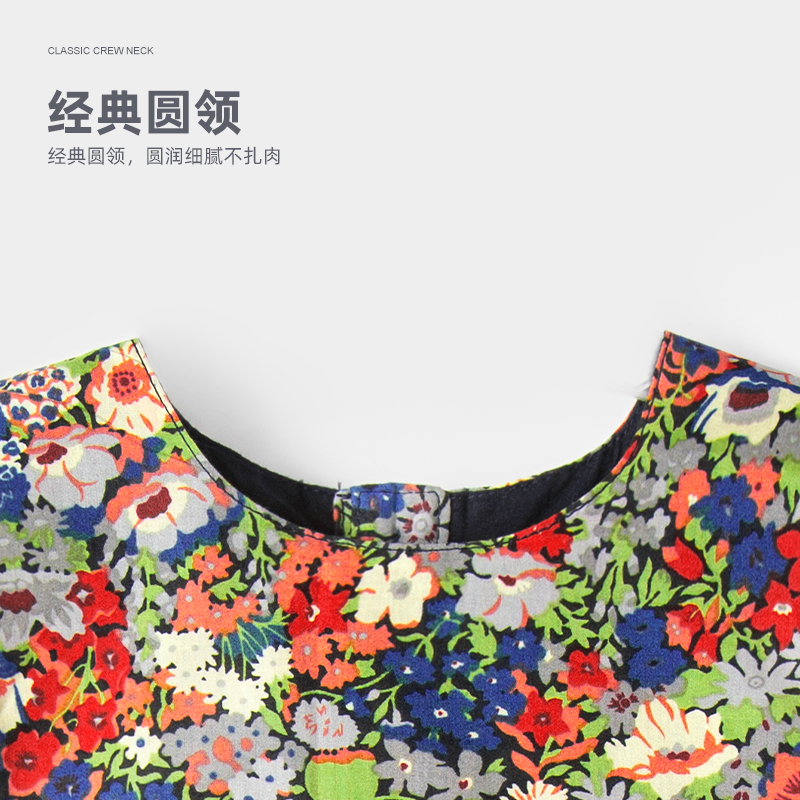 宝诗黎圆领钉珠拼接印花连衣裙2025秋季 A字裙潮 宽松减龄显瘦时尚