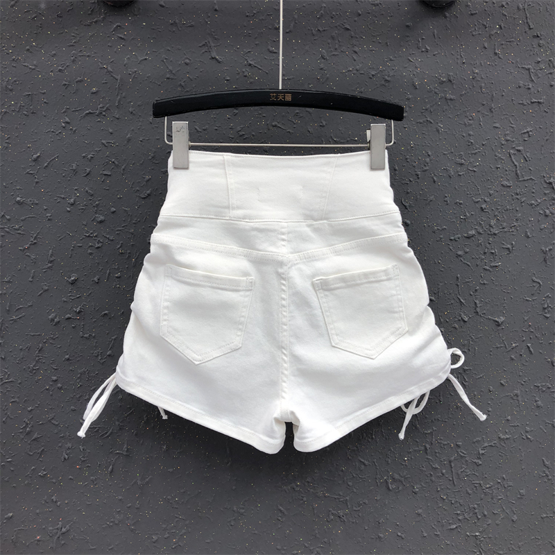 排扣高腰a字阔腿裤 时尚 显瘦韩版 欧货女夏天新款 气质绑带牛仔短裤