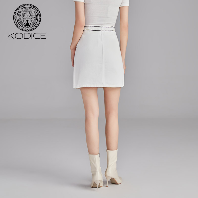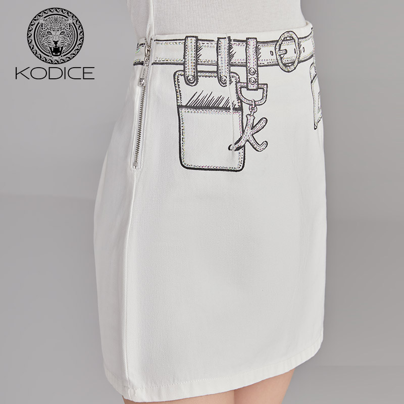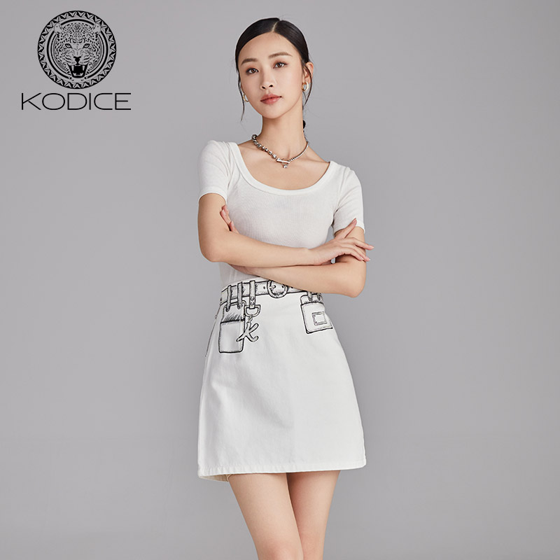印花修身 女装 简约风牛仔短裙半裙 新款 KODICE纯棉白色半身裙子春季