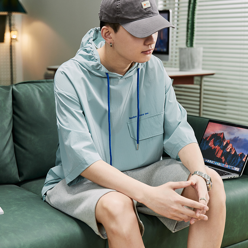 新款 连帽t恤青少年工装 半袖 短袖 上衣ins潮 卫衣男士 唐狮2025春夏季