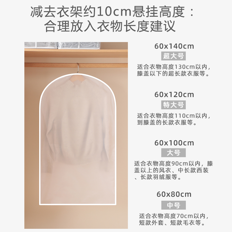 羽绒服收纳袋子 挂衣袋大衣套透明长款 衣服防尘罩挂式 家用衣物西装