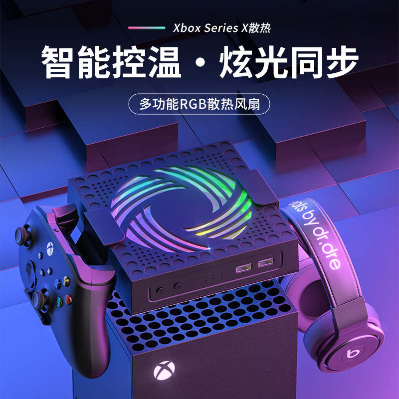 AOLION澳加狮 x主机多功能散热器防尘耳机手柄支架挂钩收纳展示RGB氛围灯XSX配件 xbox散热风扇series