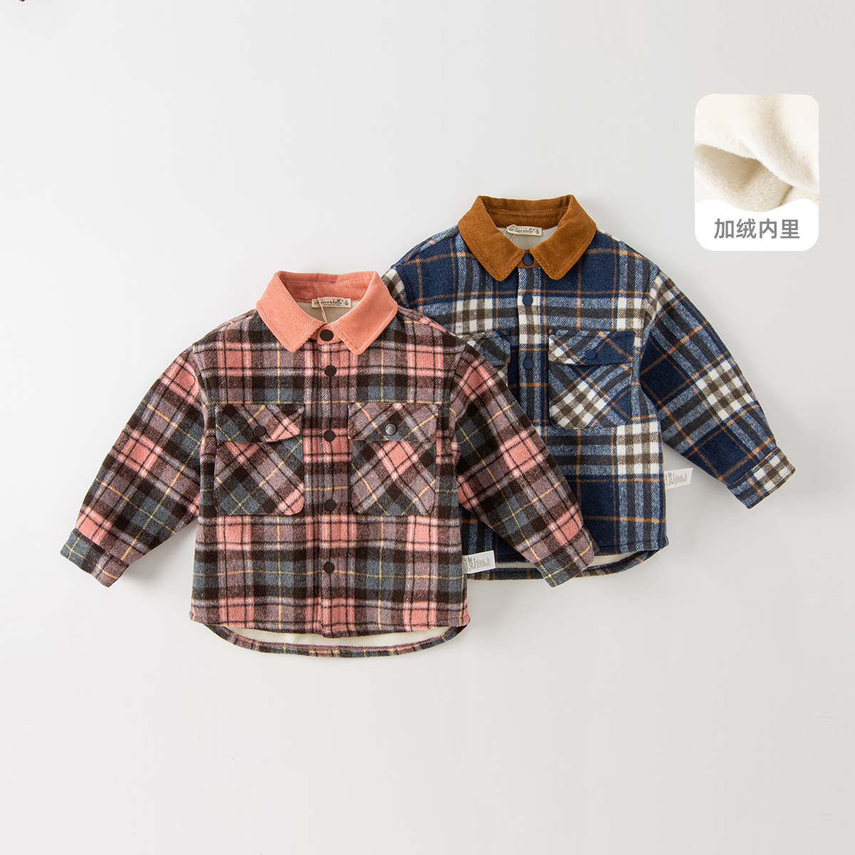 冬装 戴维贝拉男童格子衬衫 女童加绒外套中大童童装 清仓特价