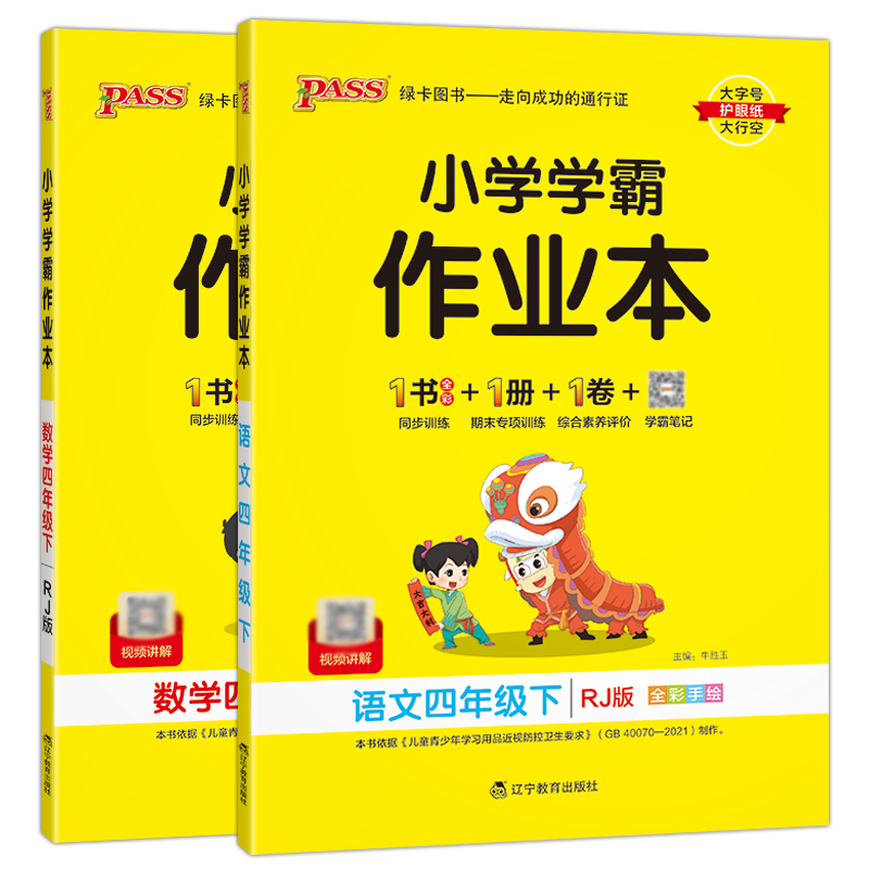 小学学霸作业本语文 现货 2024春新版 PASS绿卡 数学四年级同步练习册同步训练册附赠测试卷同步教材课时练习用天天练 包邮