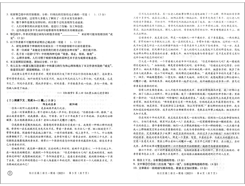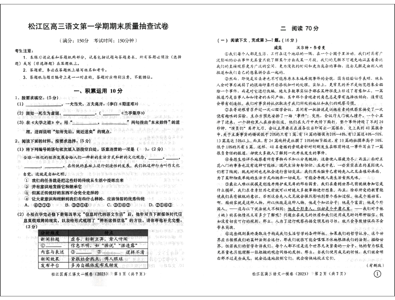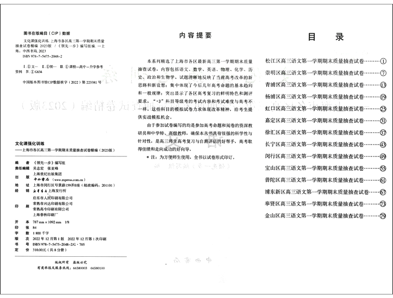 领先一步 文化课强化训练语文一模卷 语文 仅试卷 上海市各区高三期末质量抽查高中模拟试卷 上海高考语文一模卷 2023年版