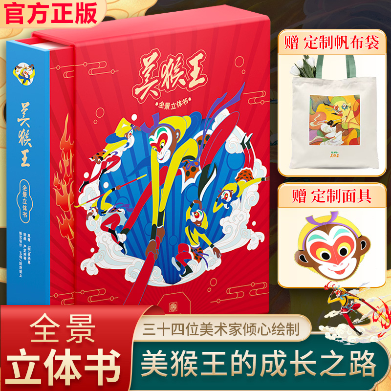 多名画家联合设计绘制 官方正版 国风艺术传承 幼儿少儿全景3D经典 全景立体页活灵活现多层次还原西游记 美猴王全景立体书
