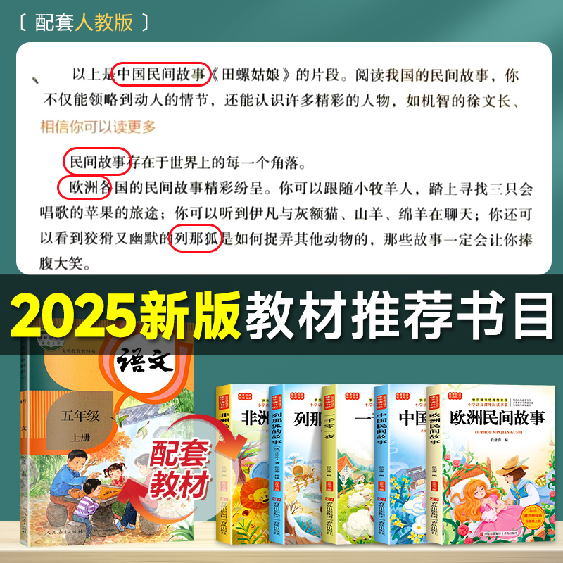 全套欧洲非洲民间列那狐 课外书正版 中国民间故事五年级上册必读 故事快乐读书吧五上田螺姑娘精选阅读书籍书目 配套人教版