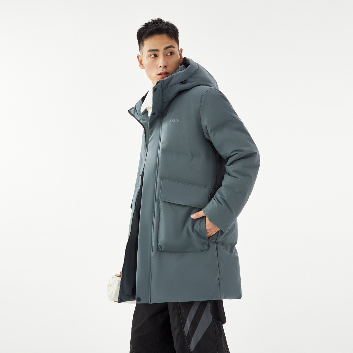 连帽商务休闲羽绒服大口袋保暖 中长款 雪中飞2025冬新款 男士