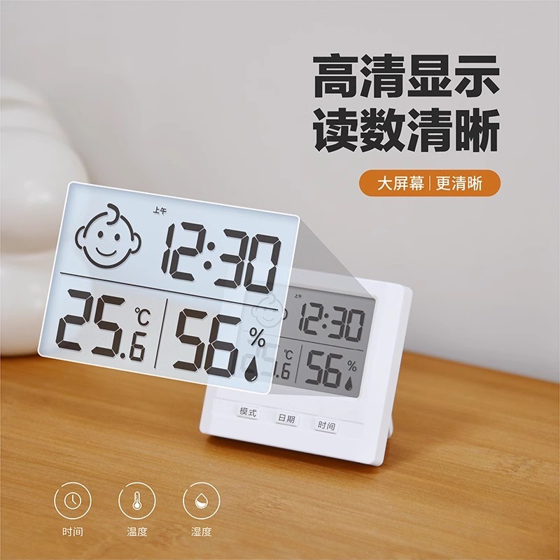 电子温湿度计家用室内高精度冰箱数显表带时间日期婴儿房