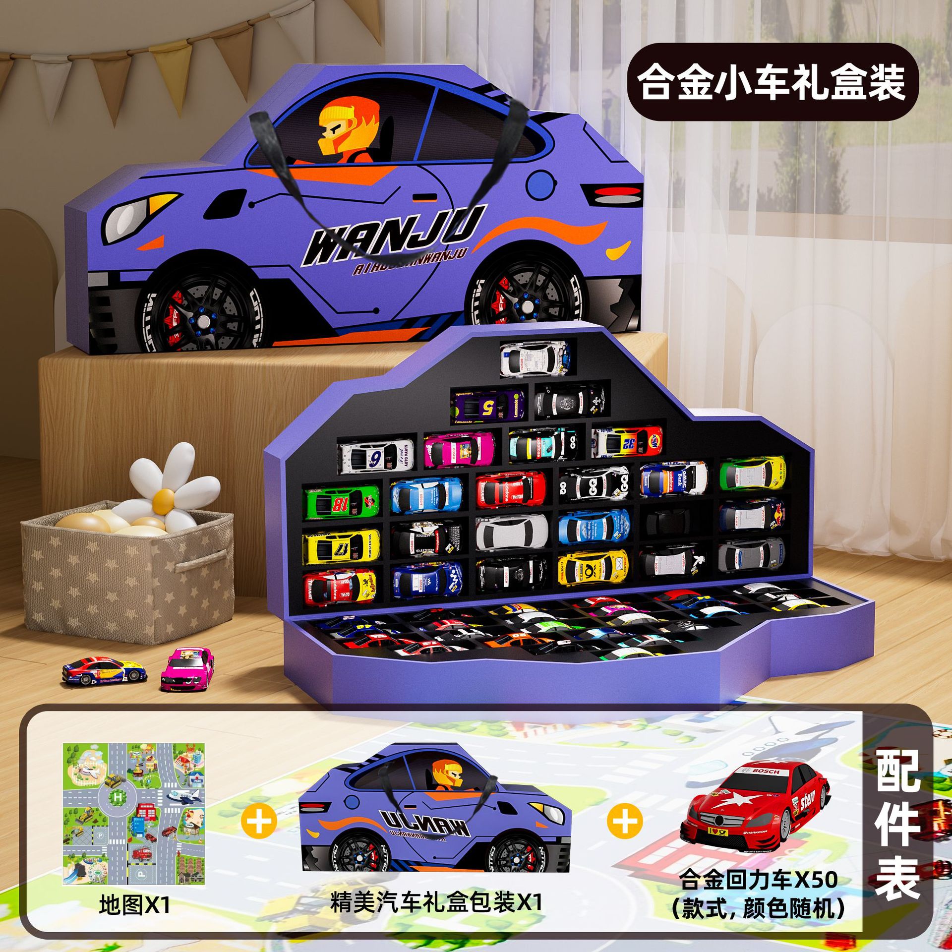 新款 男孩玩具车合金铁皮赛车回力小汽车儿童玩具仿真模型礼品套装