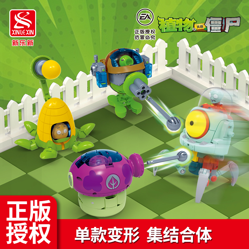 新乐新正版 植物大战僵尸儿童玩具大喷菇座驾仿真模型男孩变形机甲