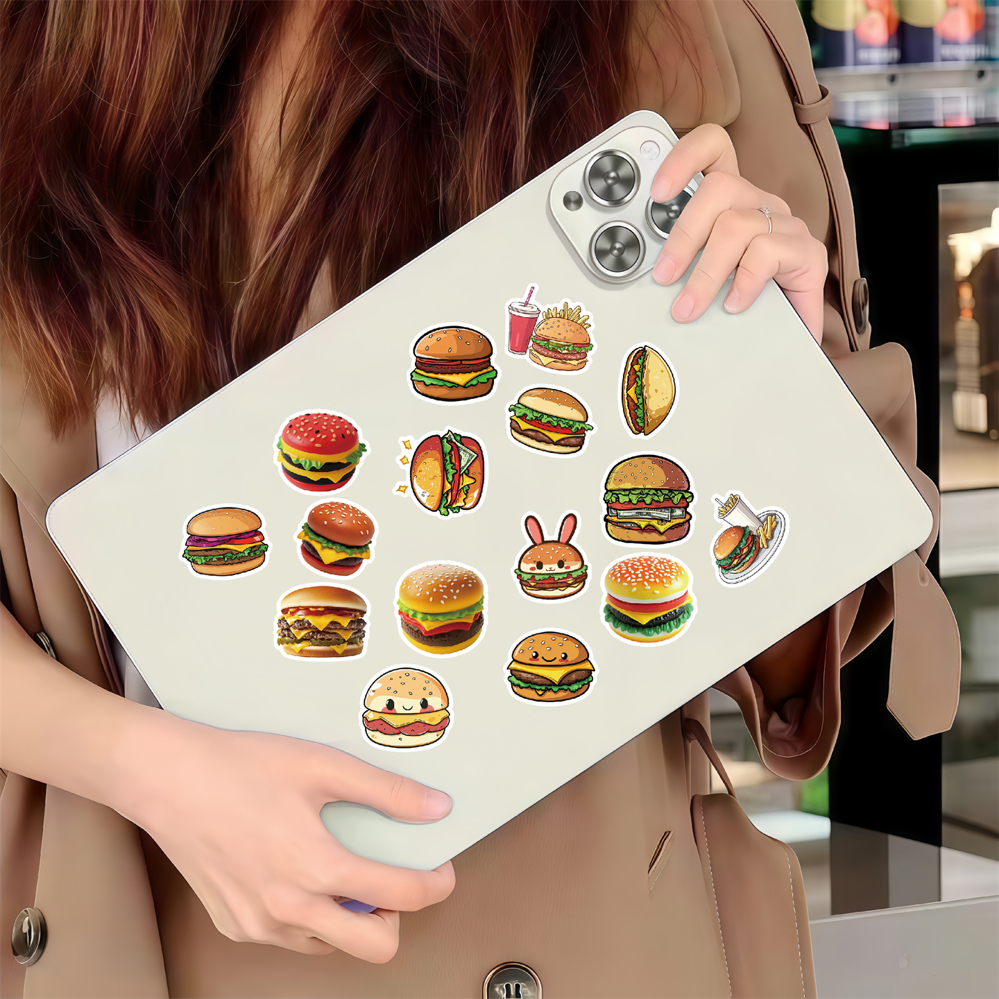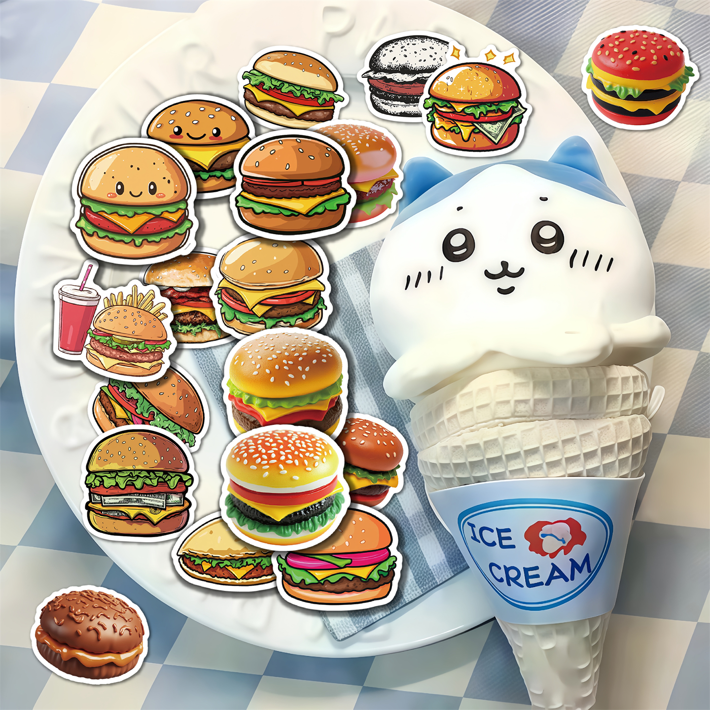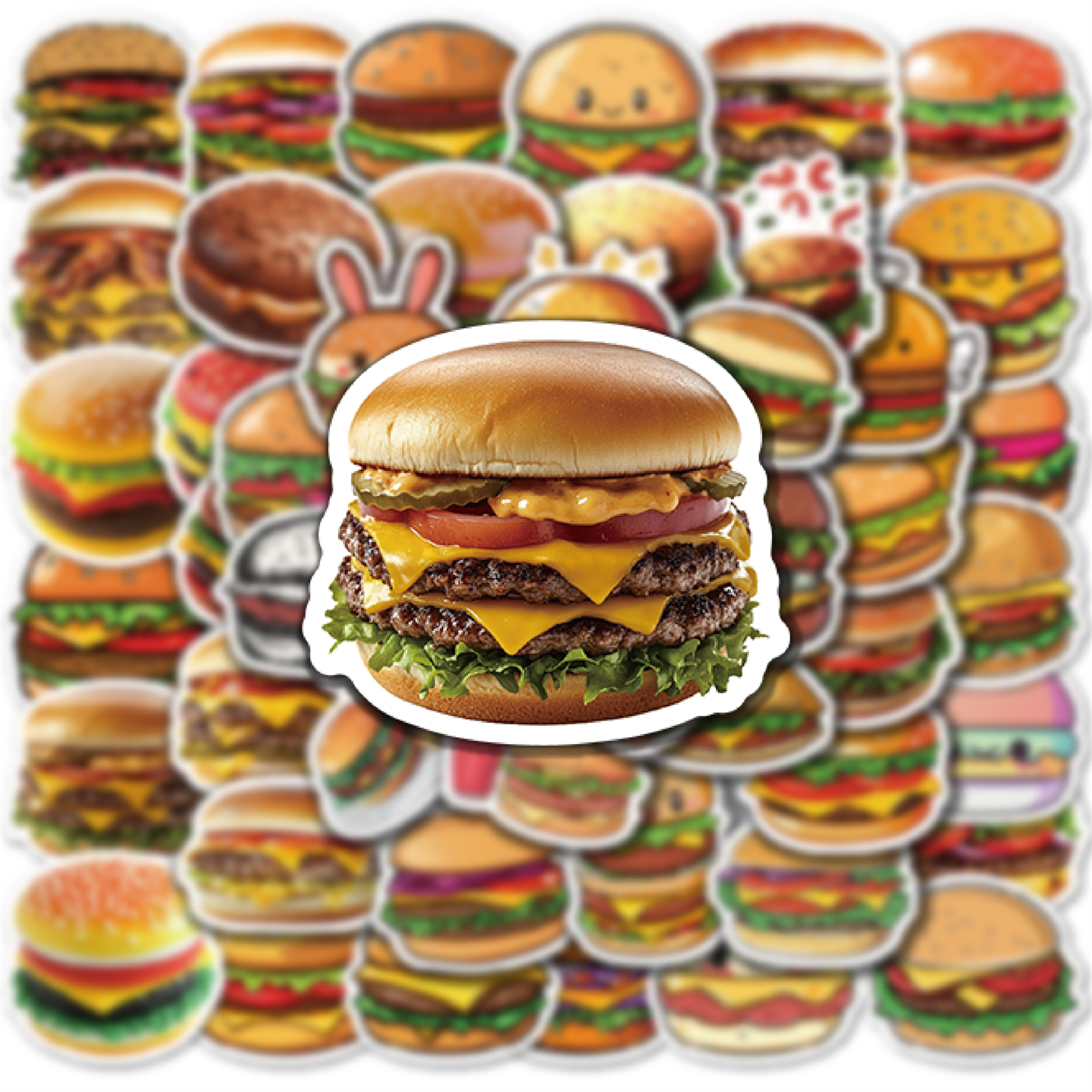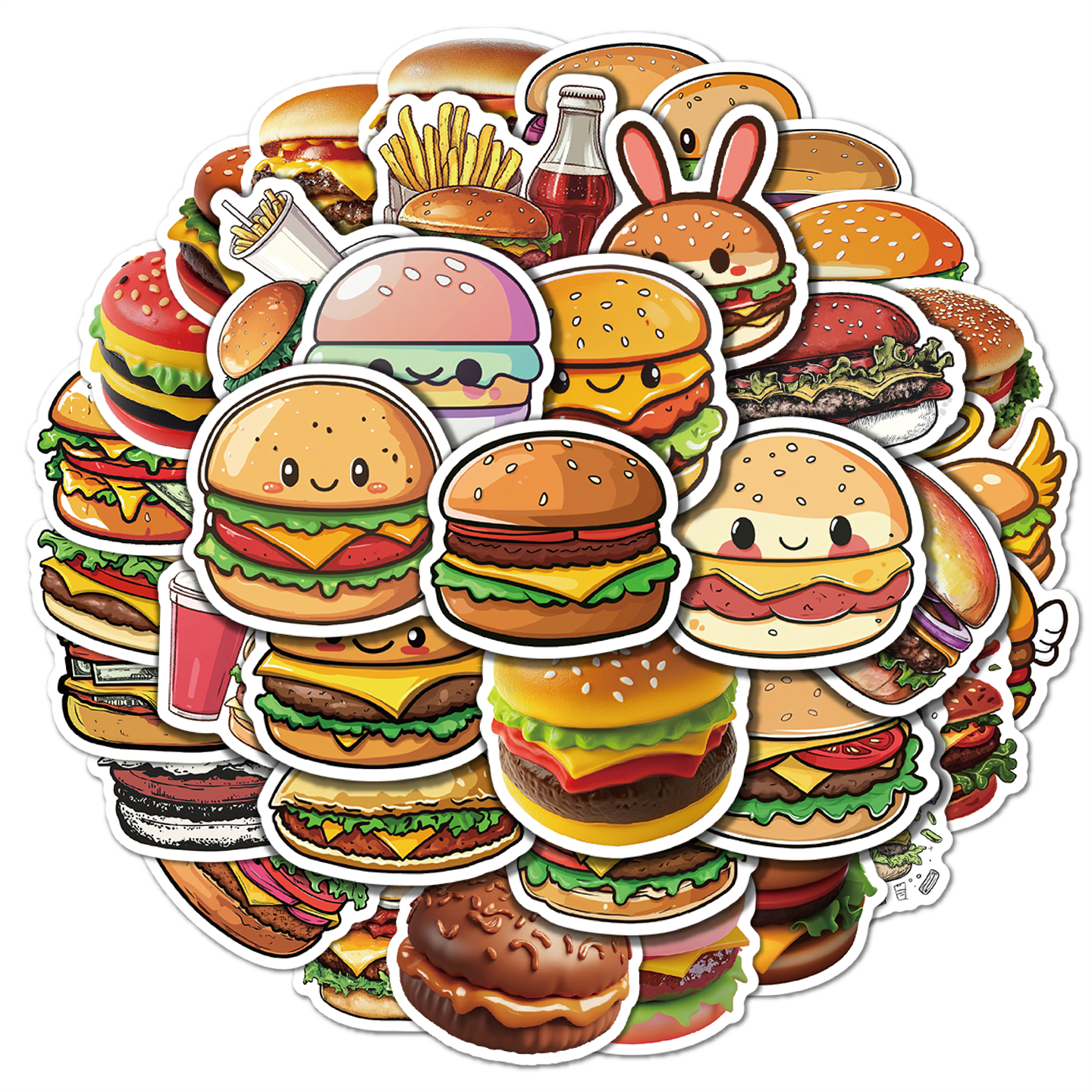 50张卡通新款 饰笔记本滑板车旅行箱汽车sticker食物食玩diy手账ins粘贴画 汉堡包仿真可爱趣味贴纸儿童贴画装
