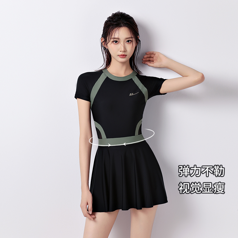 温泉度假女士保守游泳馆泳装 2025新款 连体泳裤 安踏小蛮腰泳衣女款