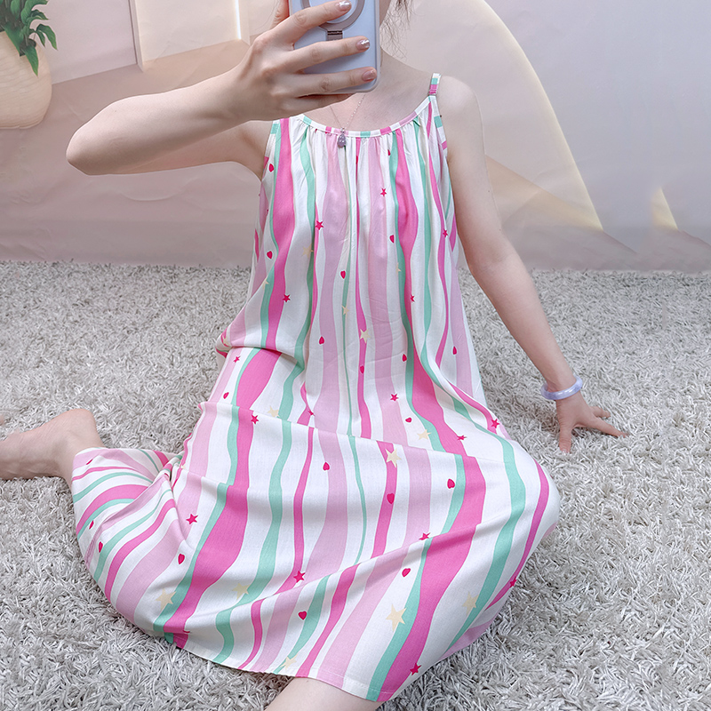 睡裙夏天甜美 长款 绵绸吊带裙子女棉绸国风大码 宽松睡衣家居服薄款