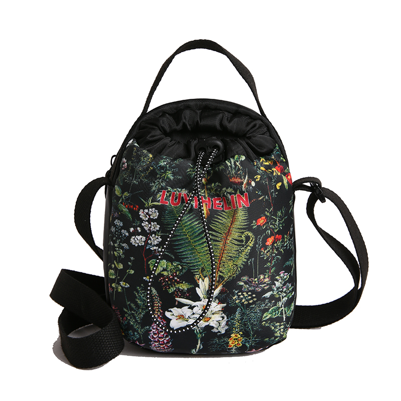 潮牌印花水杯包抽绳束口手机包小众设计感民族风斜挎包时尚 水桶包