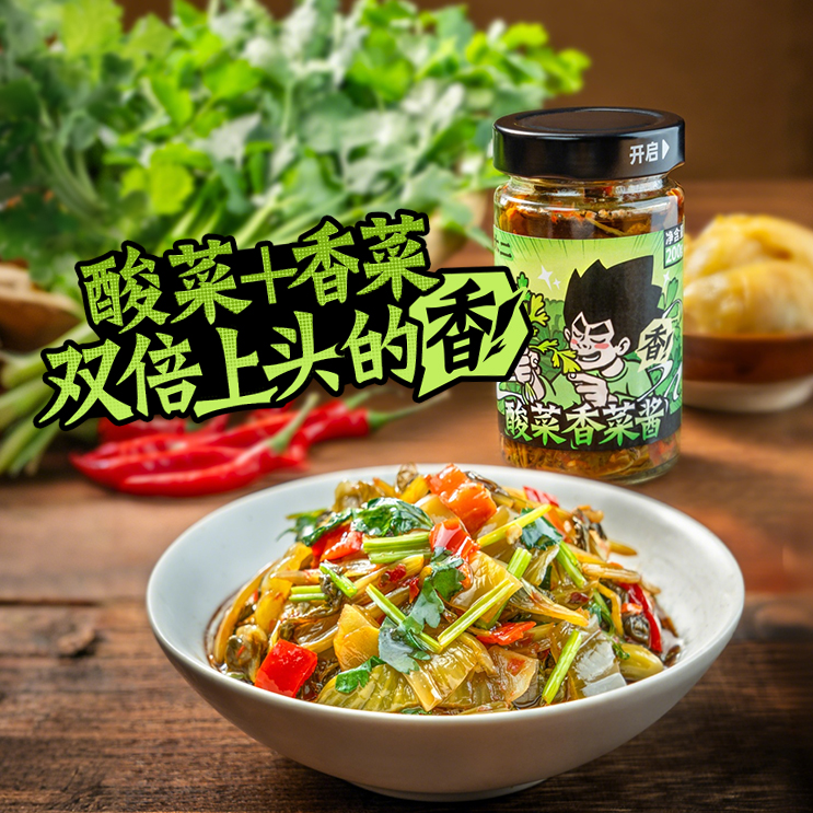 1瓶香菜酱下饭菜酸辣拌饭拌面酱 太二酸菜贡菜酱200g 天猫u先