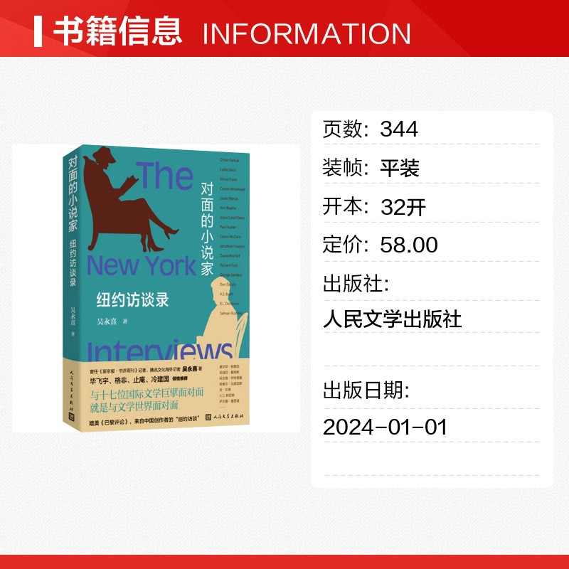 文学评论与研究文学 社 纽约访谈录 人民文学出版 图书籍 新华书店正版 文学理论 著 吴永熹 小说家 对面