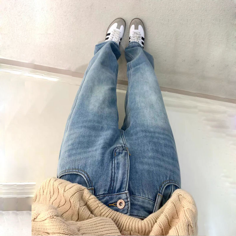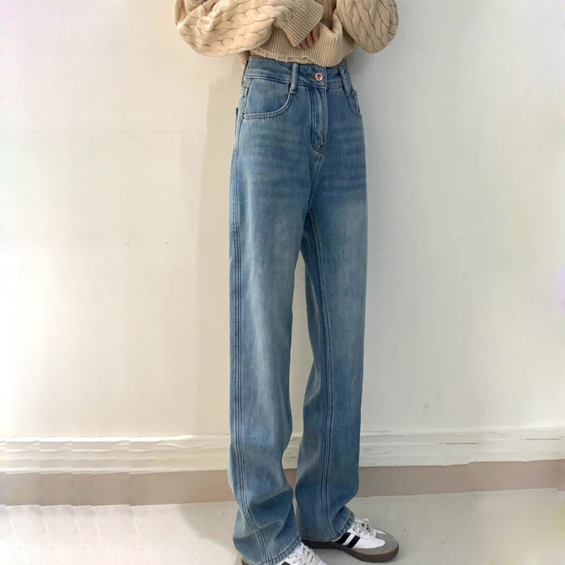 阔腿牛仔裤 高腰宽松直筒拖地裤 女秋冬季 加厚保暖长裤 新款 加绒窄版