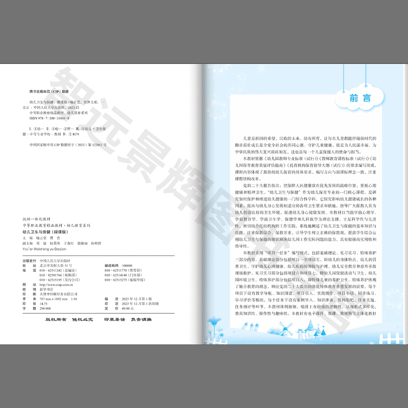 微课版 喻正莹 贾鲁 社 幼儿卫生与健 中国大学出版 9787300318448 正版