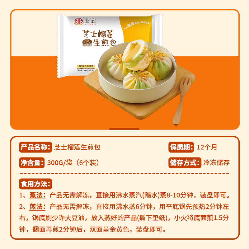 创意早餐包子半成品冷冻速食 北记芝士榴莲生煎包 顺丰冷链