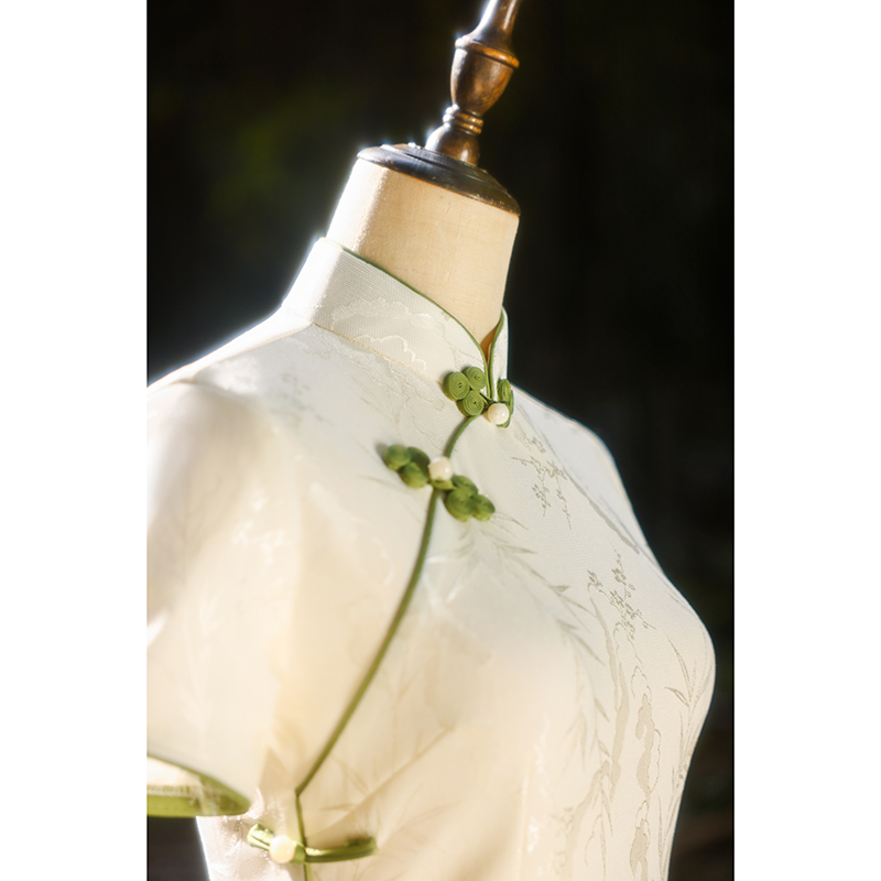 细语岁月 灰色蝴蝶结盘扣旗袍连衣裙开衫 秋季 新中式 女 新款 乔拉