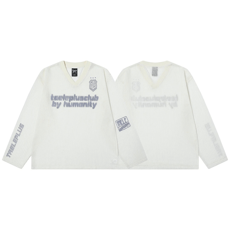 宽松休闲上衣潮 春夏V领罩衫 国潮高街镂空字母印花长袖 T恤男女同款