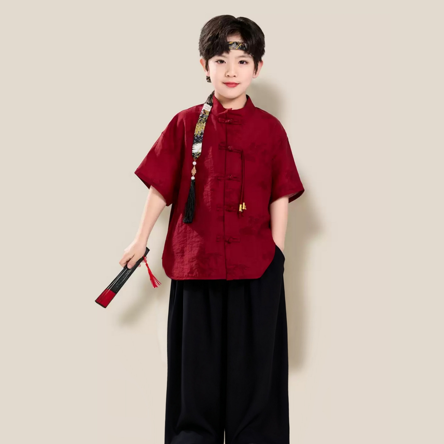 小少爷国风套装 2025新款 日常生日红色表演服 唐装 男童汉服新中式