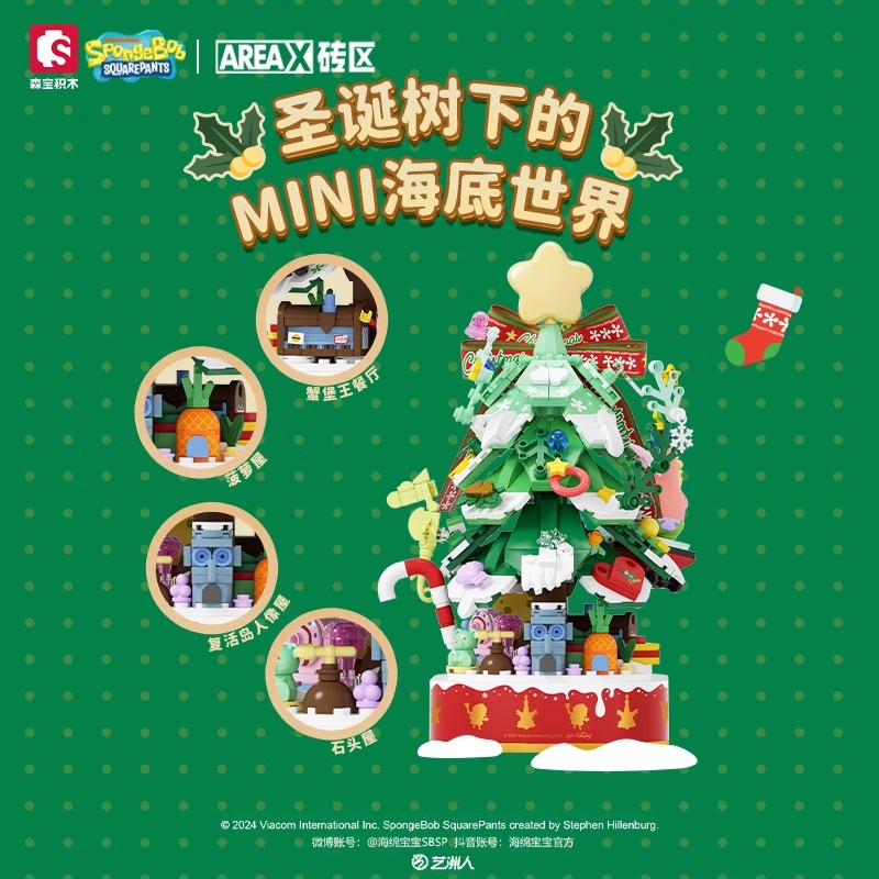 玩具 森宝积木海绵宝宝快乐圣诞星积木圣诞树礼物益智拼装 新品