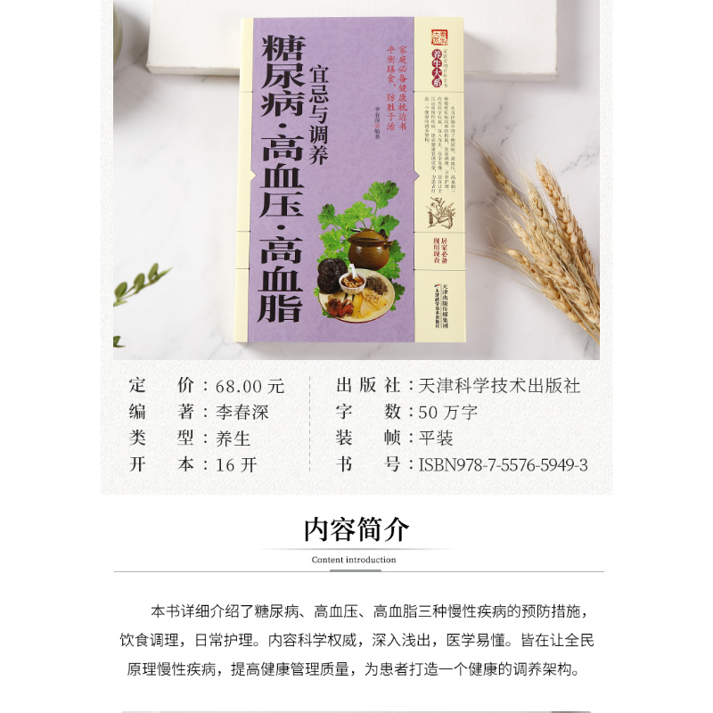 糖尿病·高血压·高血脂宜忌与调养 饮食挂图调理营养健康百病食疗养生书 糖尿病控糖主食食谱书籍适合糖尿病患者吃