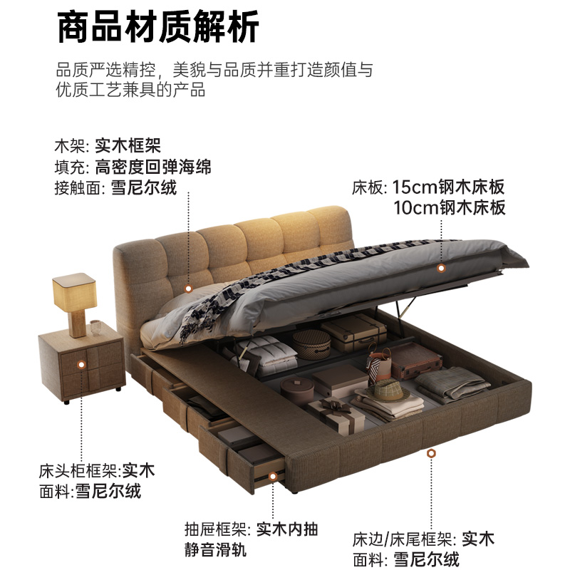 政府补贴蓝色理想雪尼尔绒泡芙床主卧极简奶油风软包1.8米双人床