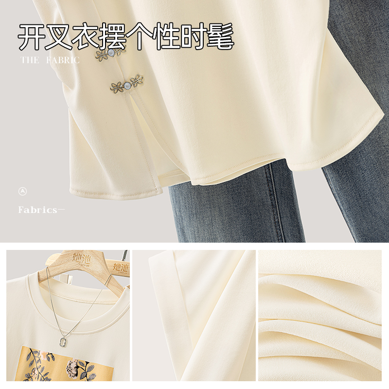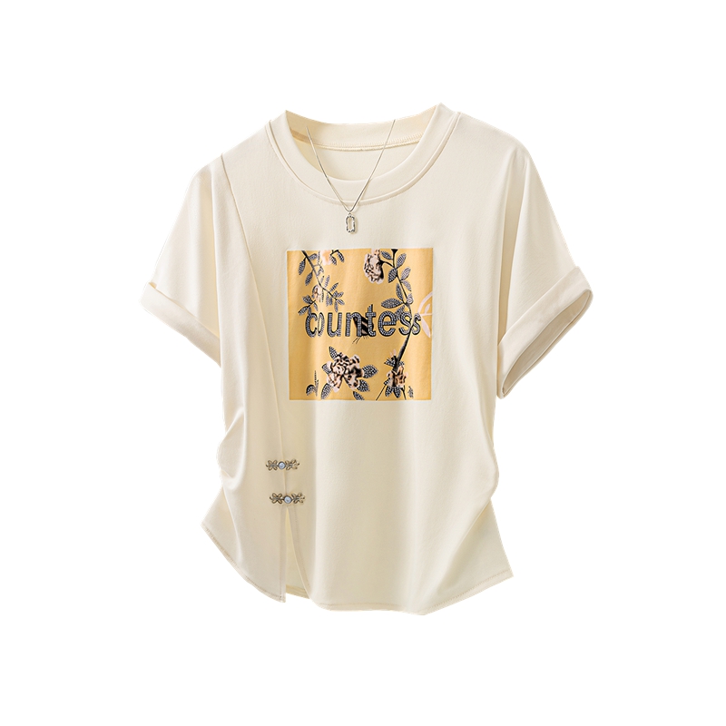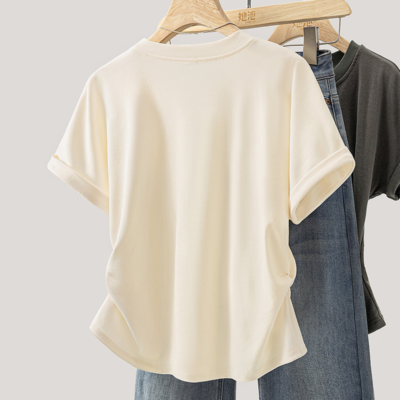休闲圆领短袖 她池印花T恤2025夏季 设计感捏褶宽松款 女装 上衣 新款