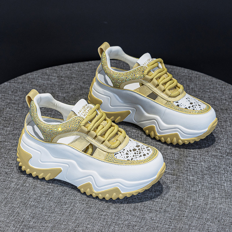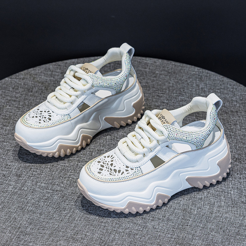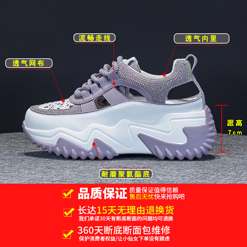 真皮厚底透气镂空老爹鞋 内增高包头运动凉鞋 爆款 新款 子 女2025夏季