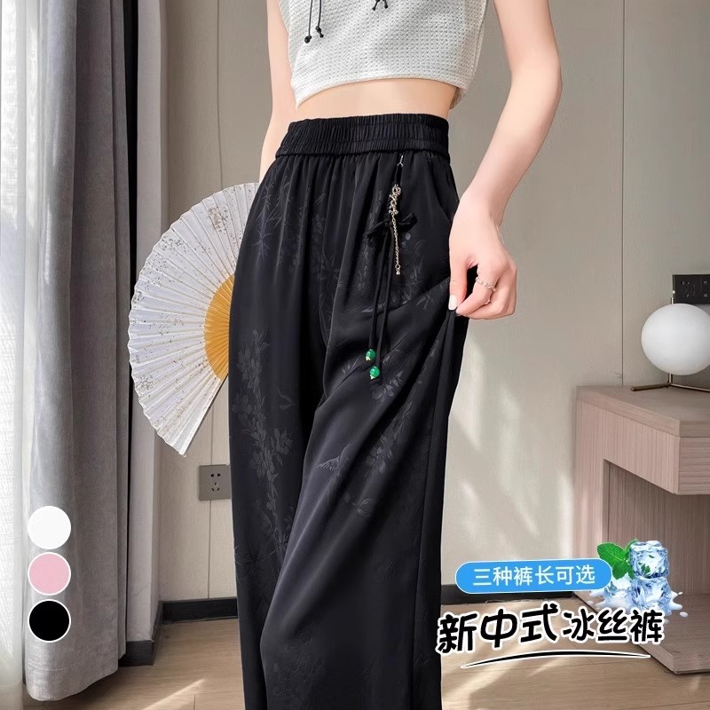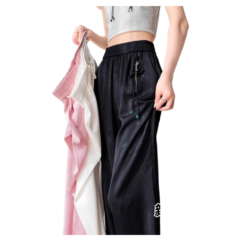 垂感国风吊坠流苏冰丝直筒裤 女夏季 子女 提花缎面阔腿裤 清仓捡漏
